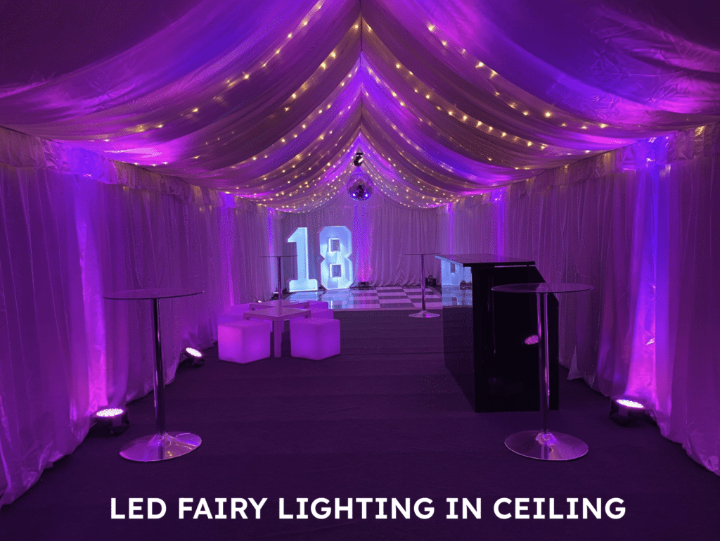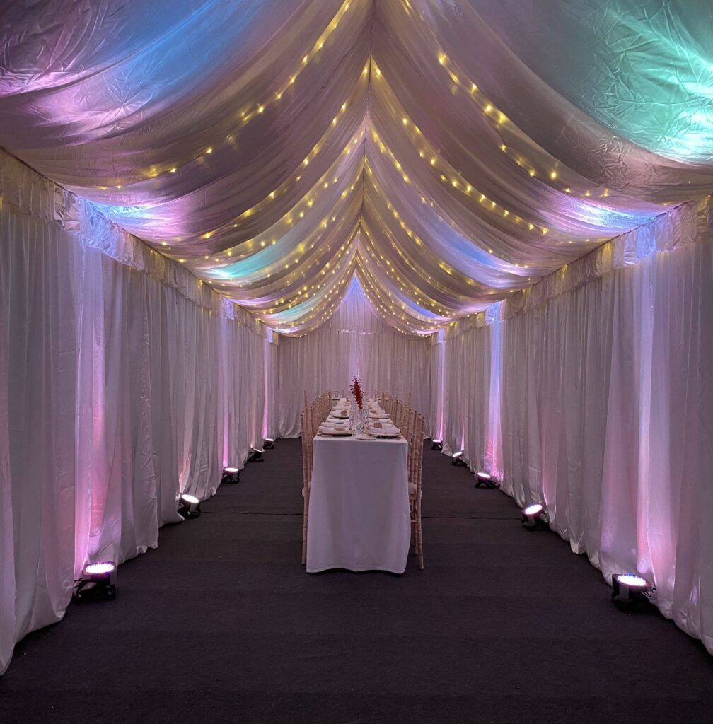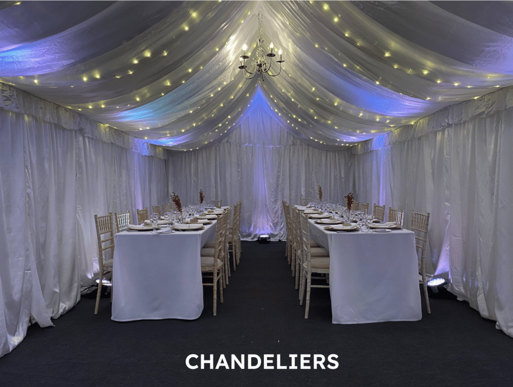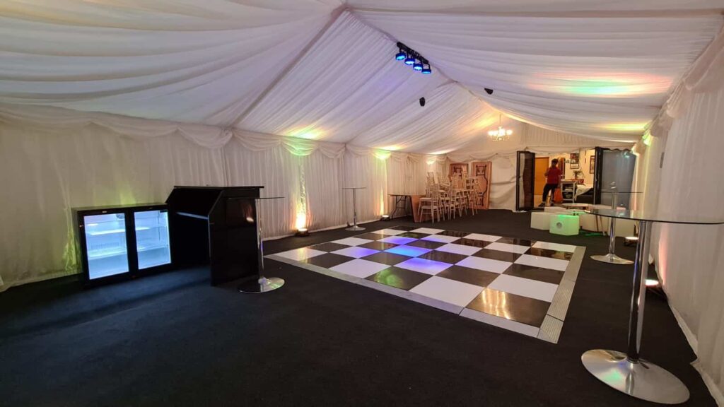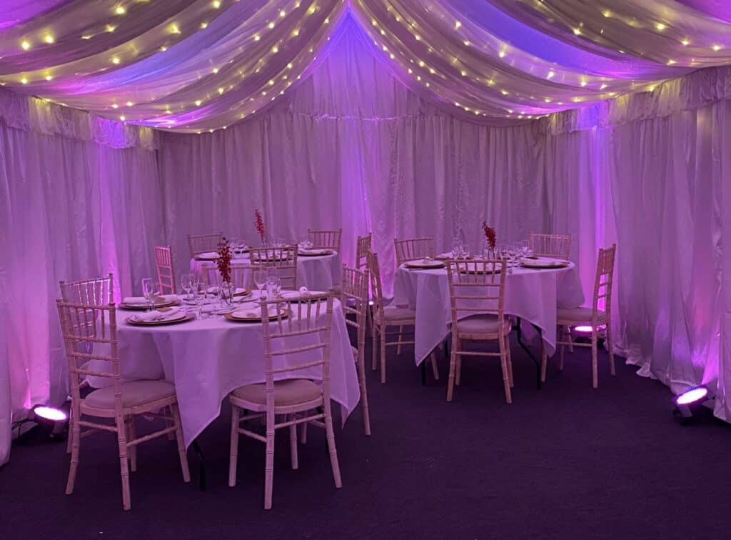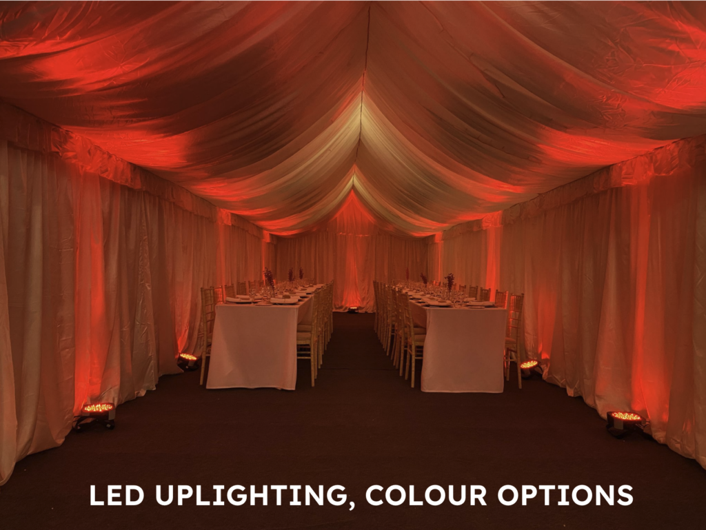 More lighting options are available inside these marquees compared to the smaller 3m x 4m Party in your Garden offerings.