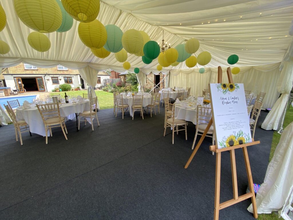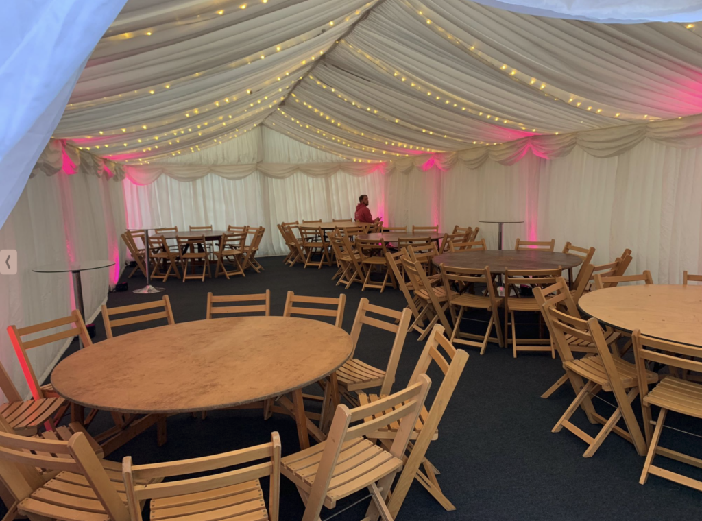 “I hired the party tent for my sister’s hen do. The tent came on the Wednesday, furniture Thursday. Our event was Friday. We had the marquee all weekend which was lovely so we definitely made use of it over the weekend too! It gave me security that if anything happened covid wise things could still be possible. Excellent quality.