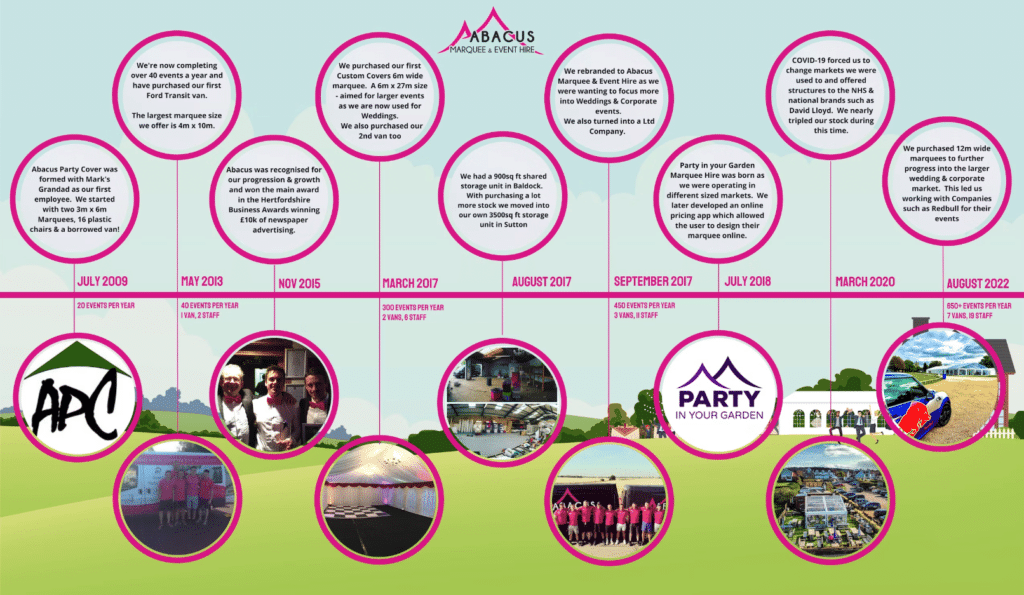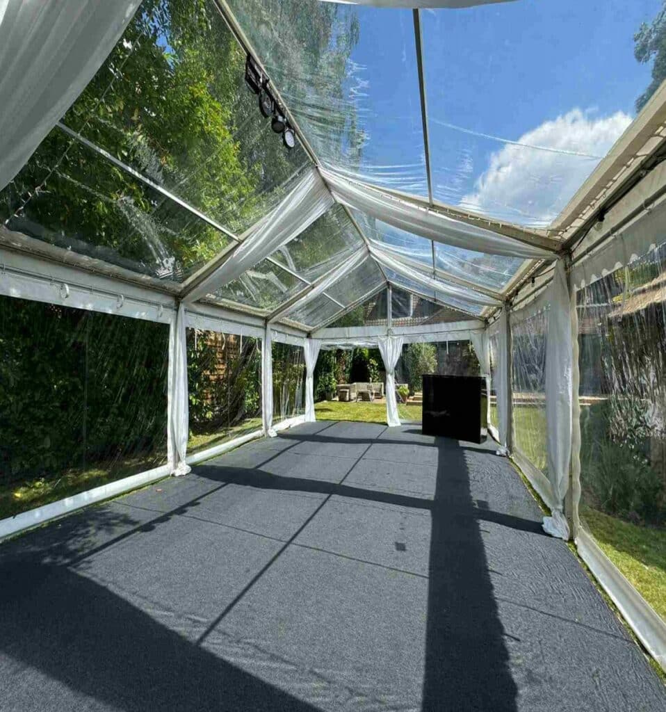 Party in your Garden is part of Abacus Marquee & Event Hire who offer more premium marquee offerings. Party in your Garden offers 3m & 4m garden friendly structures where Abacus Marquee & Event Hire offer 6m, 9m and 12m wide marquees which offer a more premium finish and additional spec options as below