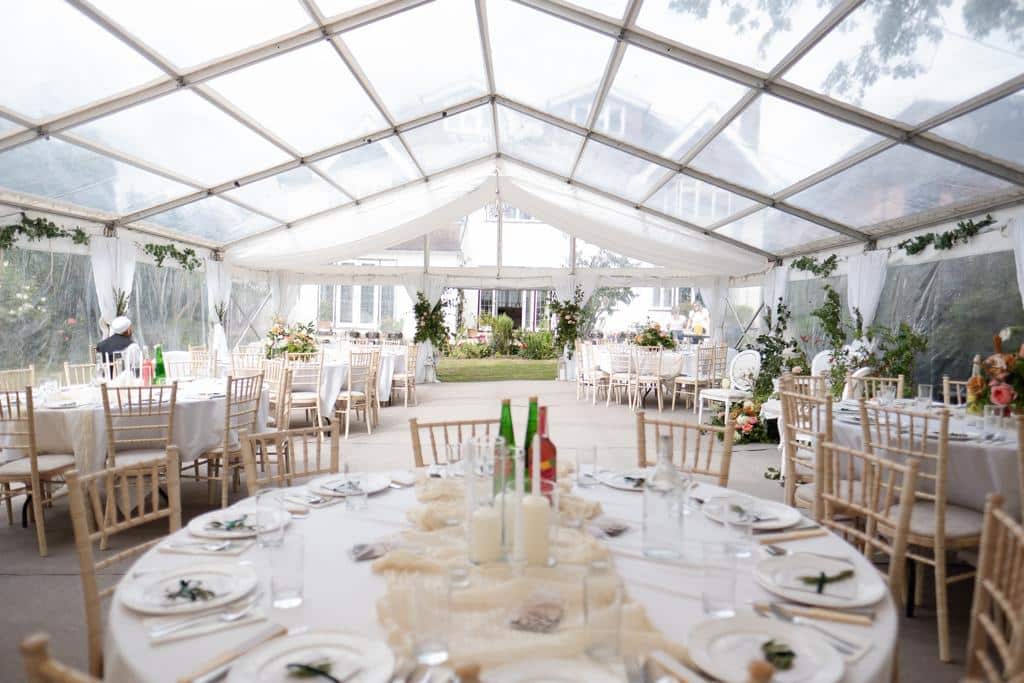 The marquee was put up a few days before our wedding thereby enabling us a good amount of time to add our own decorations which was a bonus. Everyone we spoke to throughout (Noah, Rebecca and especially the guys who did the manual stuff!) were fantastic, very polite, informative and helpful and dealt with our constant queries and revisions with efficiency.