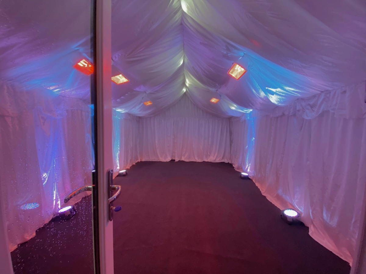 A marquee will instantly give you that much needed space and takes the pressure off from the house (and your cream carpets!) Warm enough during the winter months thanks to clever heating systems an a neat fit to most houses. No physical drilling into the house is needed as the marquees are freestanding. Can be installed over french doors, sliding doors bi-fold doors…any doors! We are your small marquee hire experts!